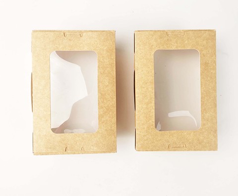 Wholesale Takeaway Lunch Packaging Kraft Paper Salad Fruit Box with PET Window